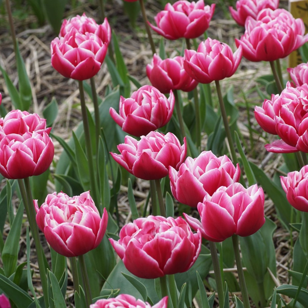 Pæonblomstret lyserød tulipan med hvide kanter. Blomstrer på robuste mellemlængde stilke i meget lang tid midt på foråret. Fra økologisk dyrkning. 7 løg per pose (eller vælg en værdipakke)